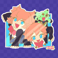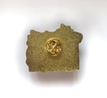 A hard enamel pin featuring the ORION TWINS and Gruntstar, ready to pop out of the screen!
